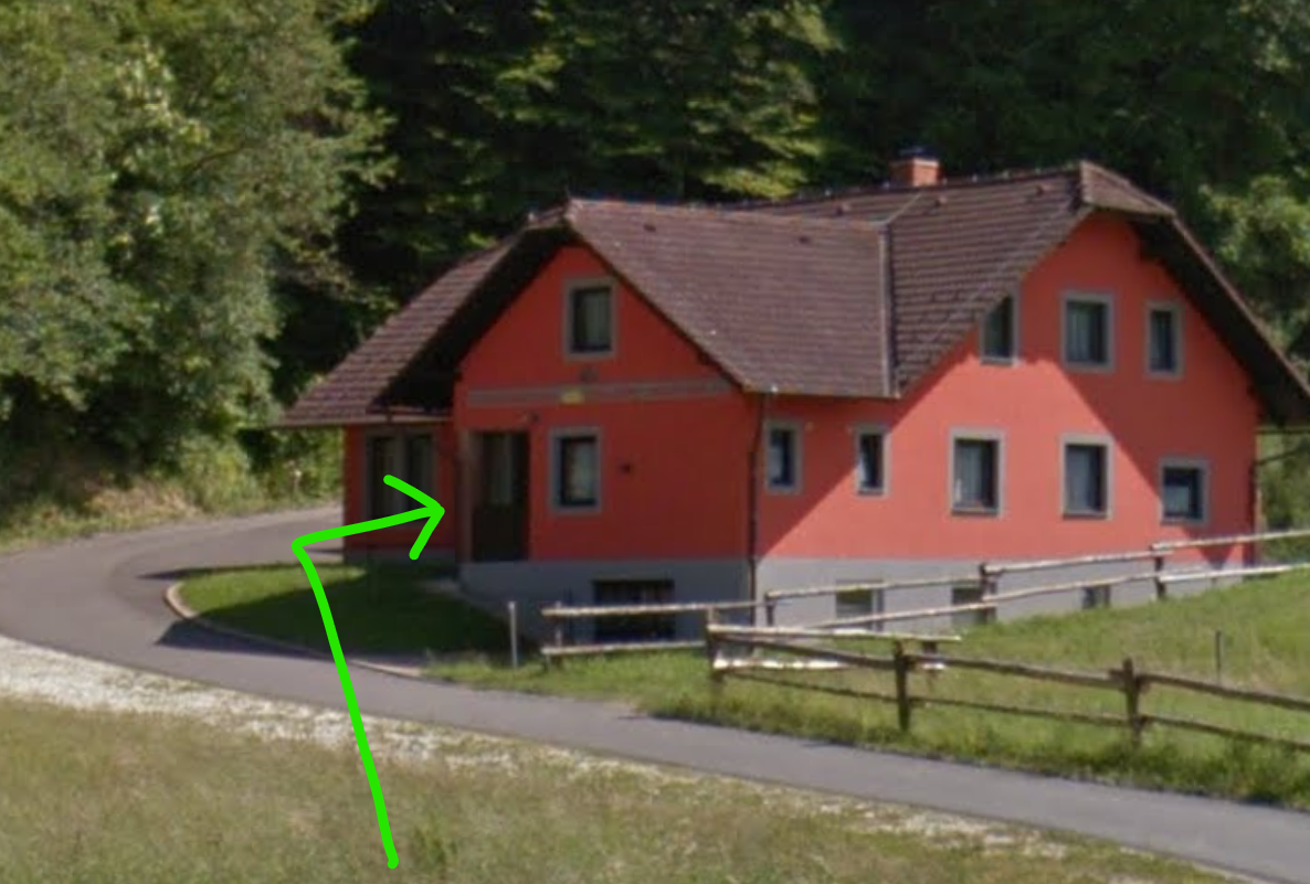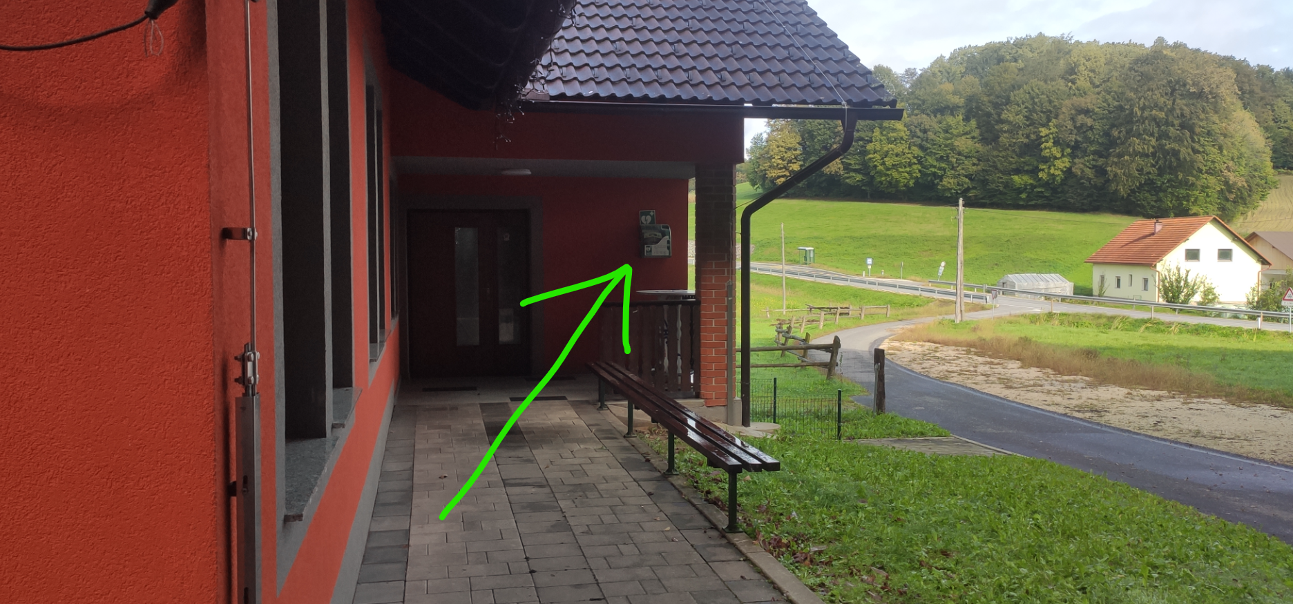 [OPIS POTI] zunaj, na steni pod nadstreškom, desno od vhodnih vrat