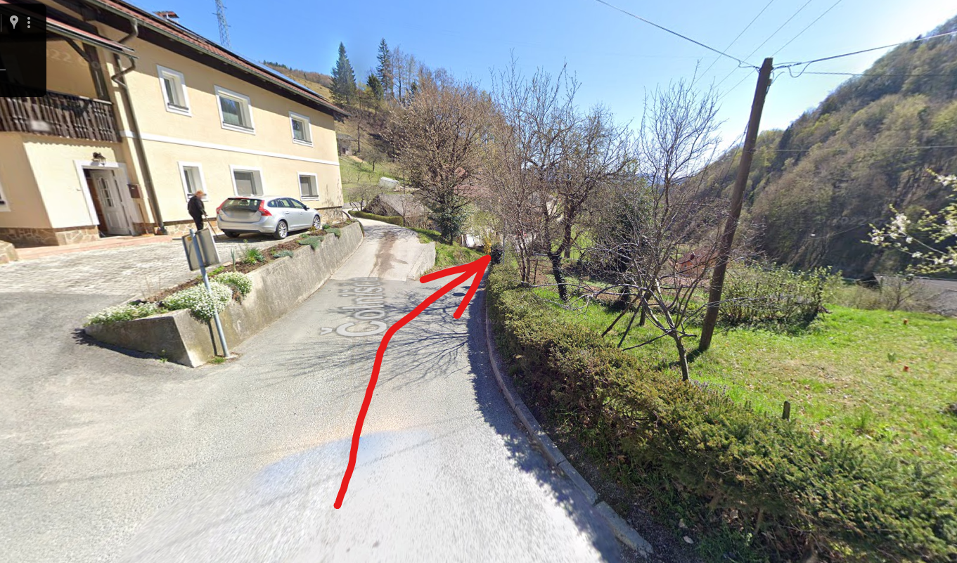 [OPIS POTI] zunaj, na spodnjem delu stavbe, ob garažnih vratih (ni viden z glavne ceste)