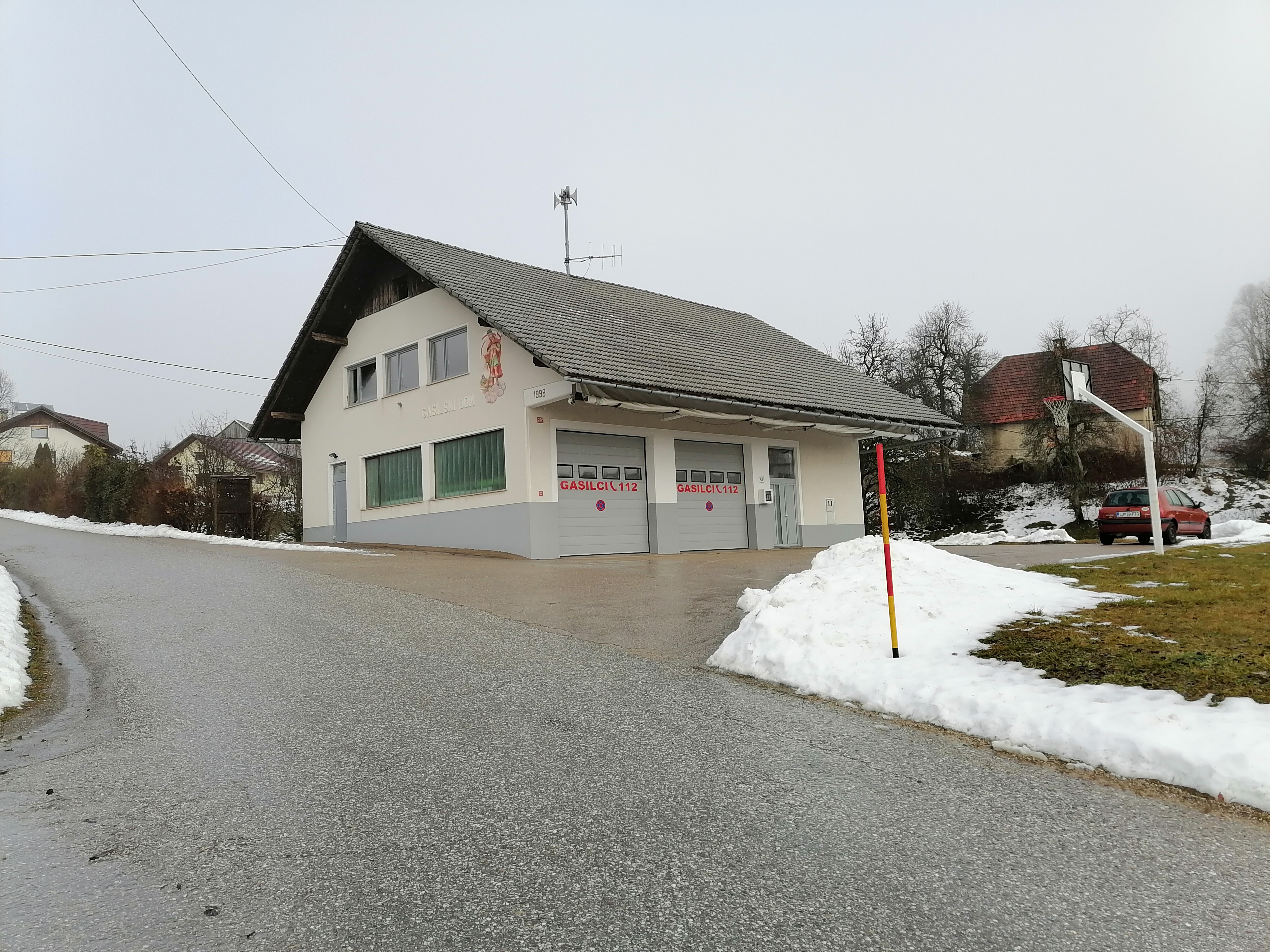 [OPIS POTI] AED se nahaja v omarici na zunanji strani gasilskega doma pri vhodnih vratih. AED je dobro viden z glavne ceste.