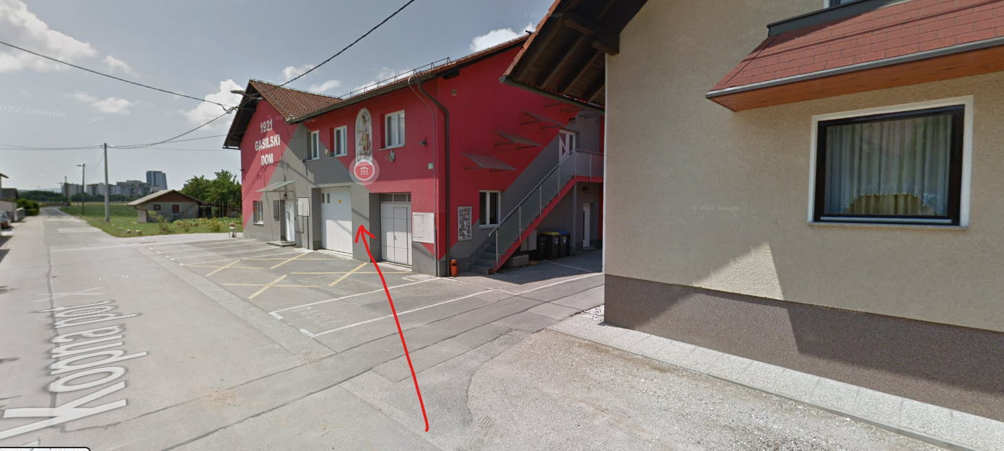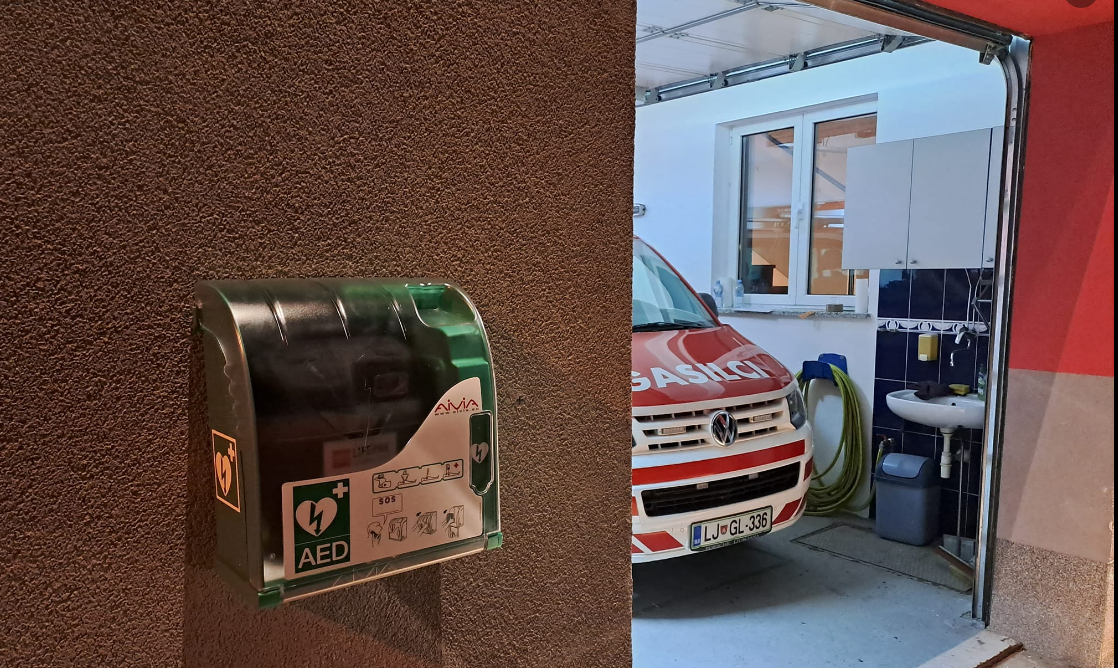 [OPIS POTI] AED se nahaja med garažama gasilskega doma