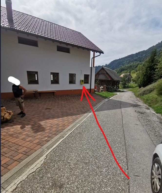 [OPIS POTI] na stanovanjski hiši, desno od vhoda, ob dvorišču