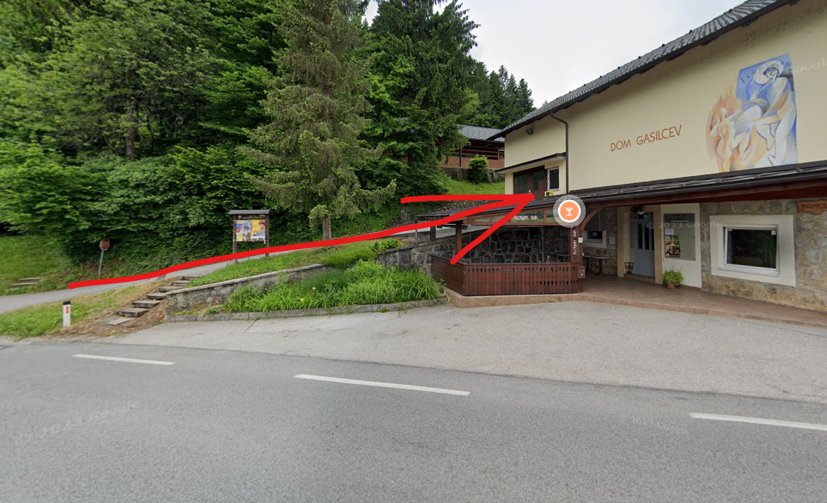 [OPIS POTI] zunaj, desno od garažnih vrat, pod oknom (vhod z zgornje, stranske ceste)